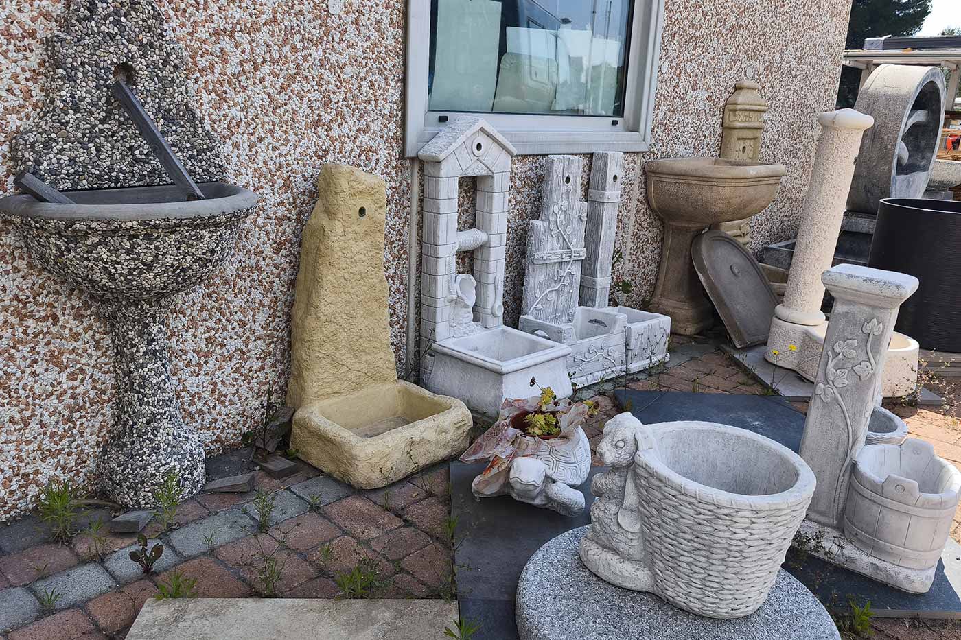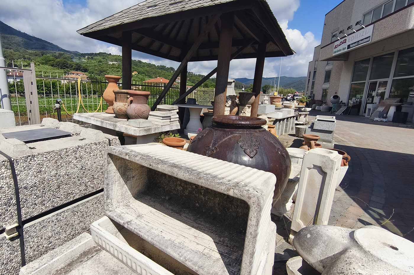 Proposte funzionali per spazi all’aperto: panche, tavoli, fioriere, bordure e finiture per terrazze e zone relax.